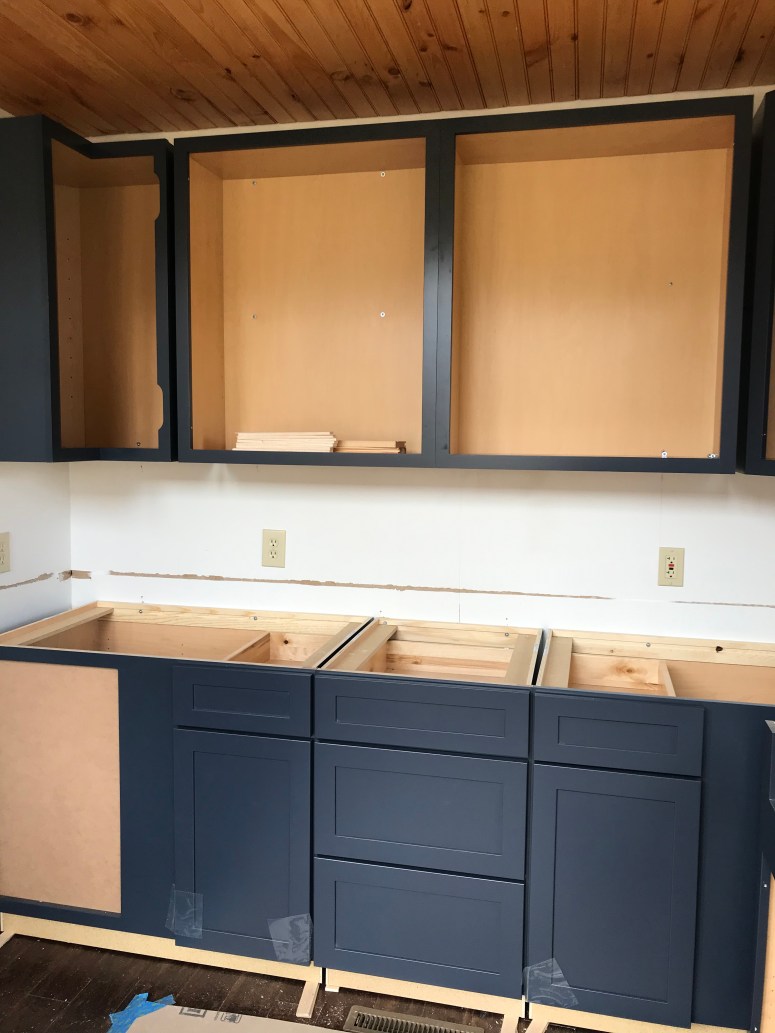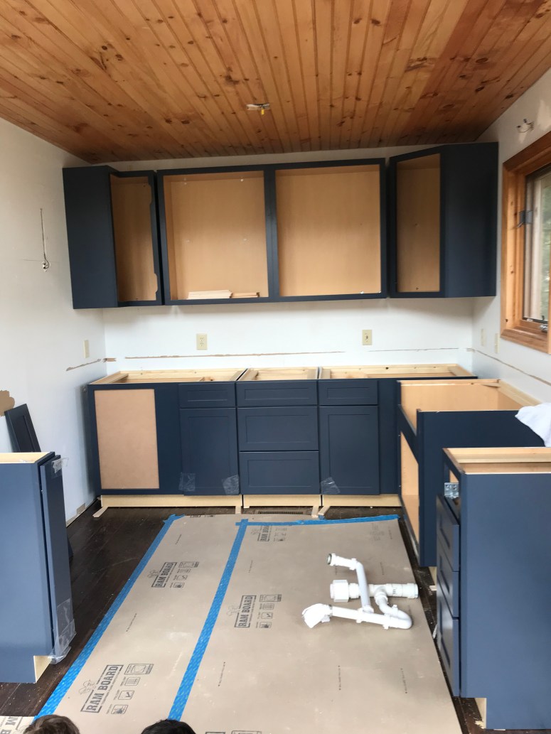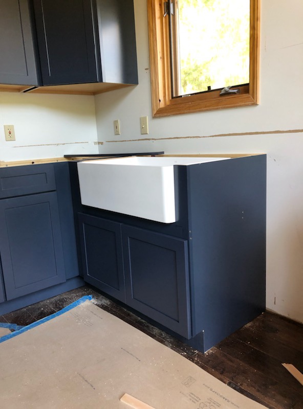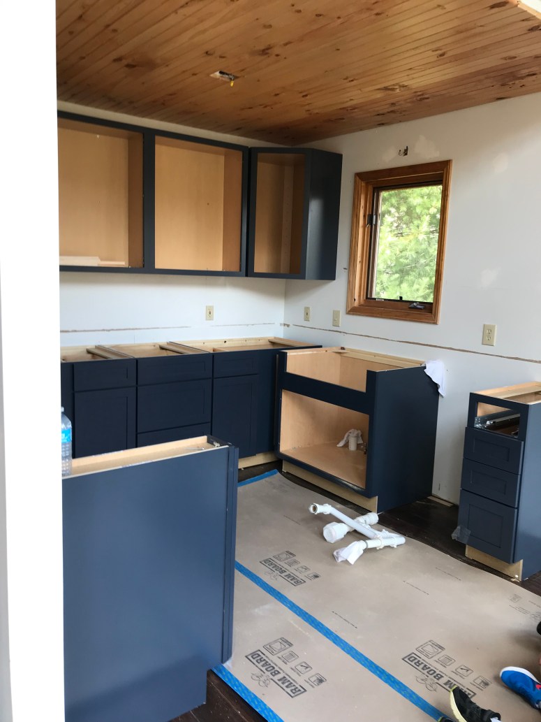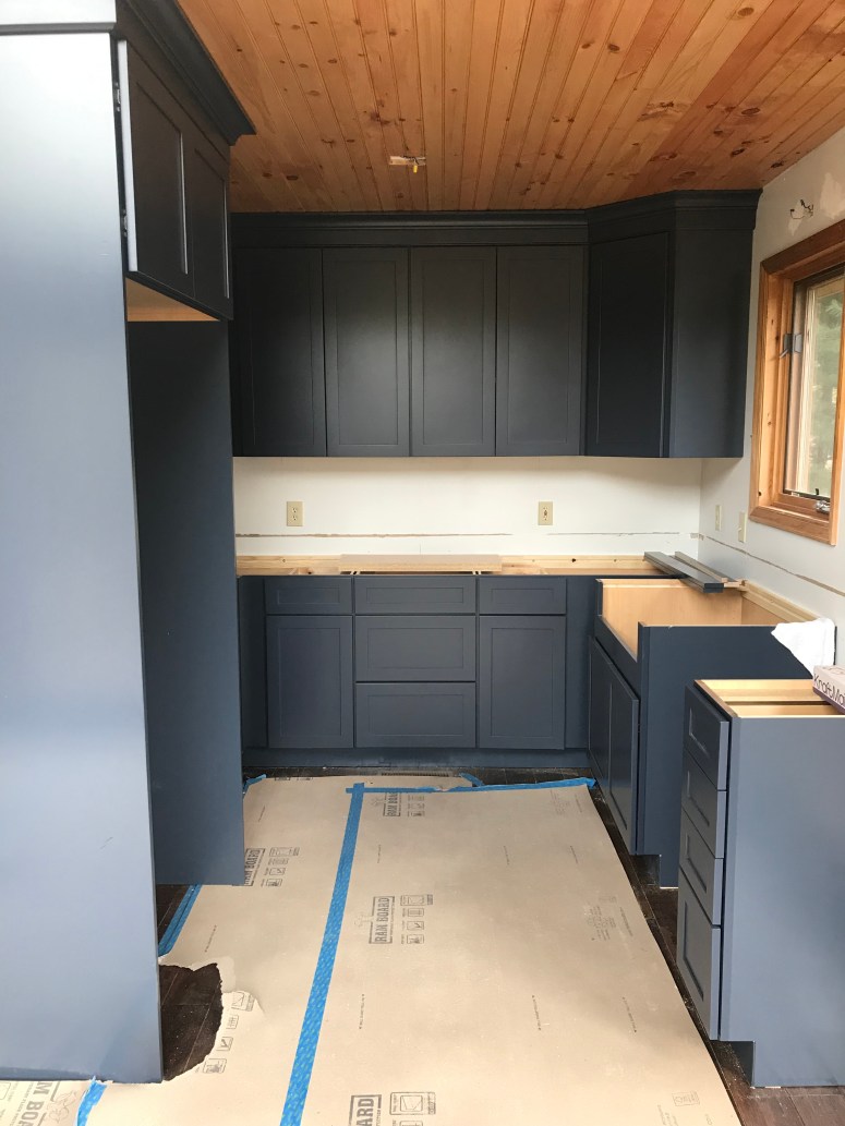 Cabinets are slowly but surely getting installed. We had some issues where new doors needed to be ordered to accommodate the huge farm sink. We also need wider doors for the spice cabinets and we have a new garage panel for the refrigerator going in because it had pressure marks from packaging. Templates will be happening in the next week for the quartz countertops and hopefully we will have a fully functioning kitchen before the end of the month.
