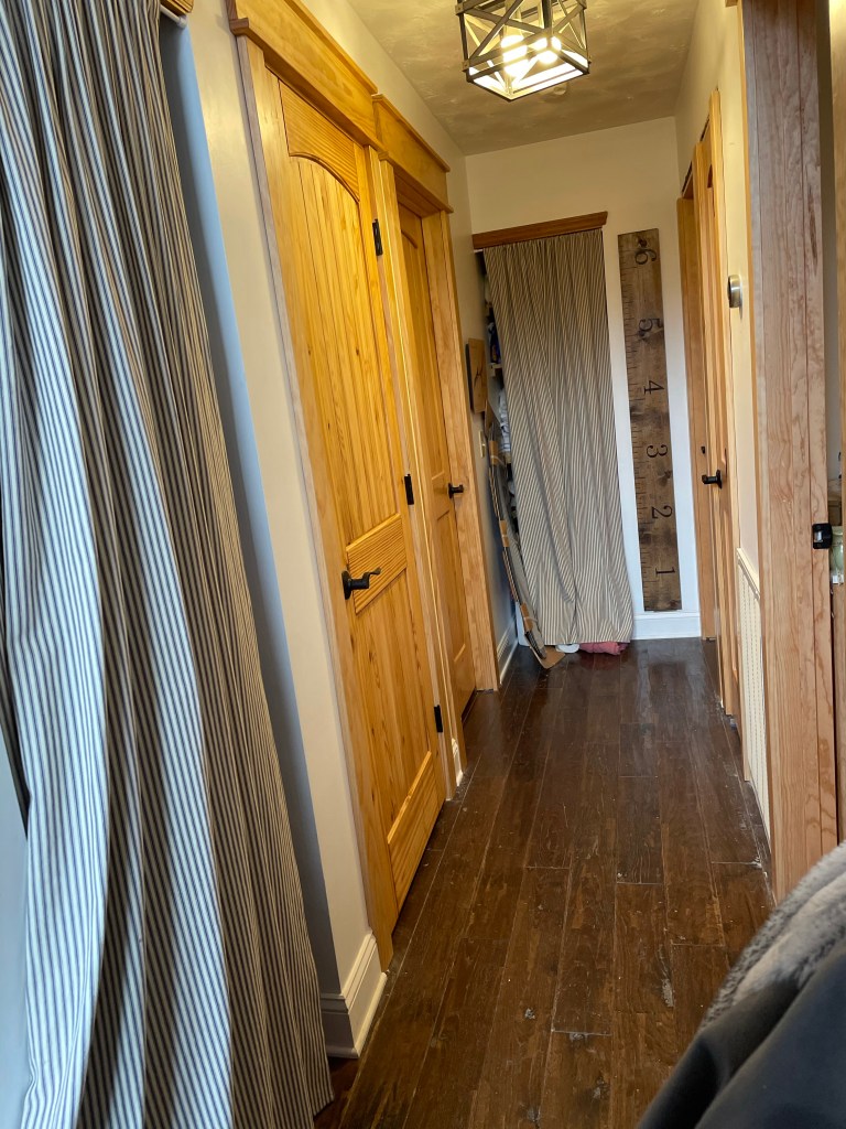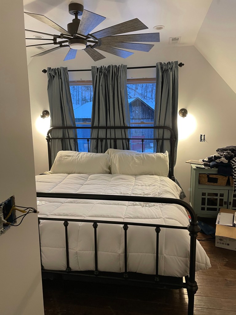 We are so close to finishing the inside of the house. Upstairs in the master, we have finished the flooring, drywall, and added a fan plus two sconces. The bedroom dressers and night stands are being delivered next Monday and we will finally have our clothing in our room for the first time in a year!