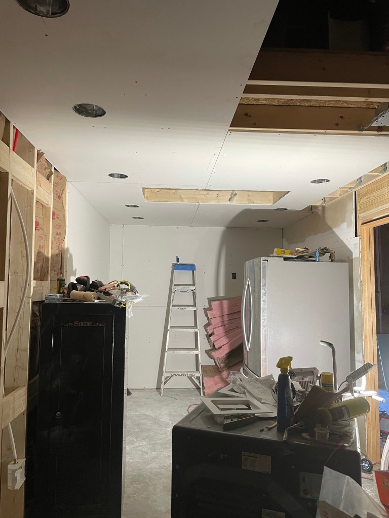 The basement is really coming along. Drywall in the playroom and laundry room is done! Cabinets for the laundry room arrived today and have been partiallly installed. All the electrical is finished and we just need to pop in a few more can lights. The flooring in the basement will go in next week.