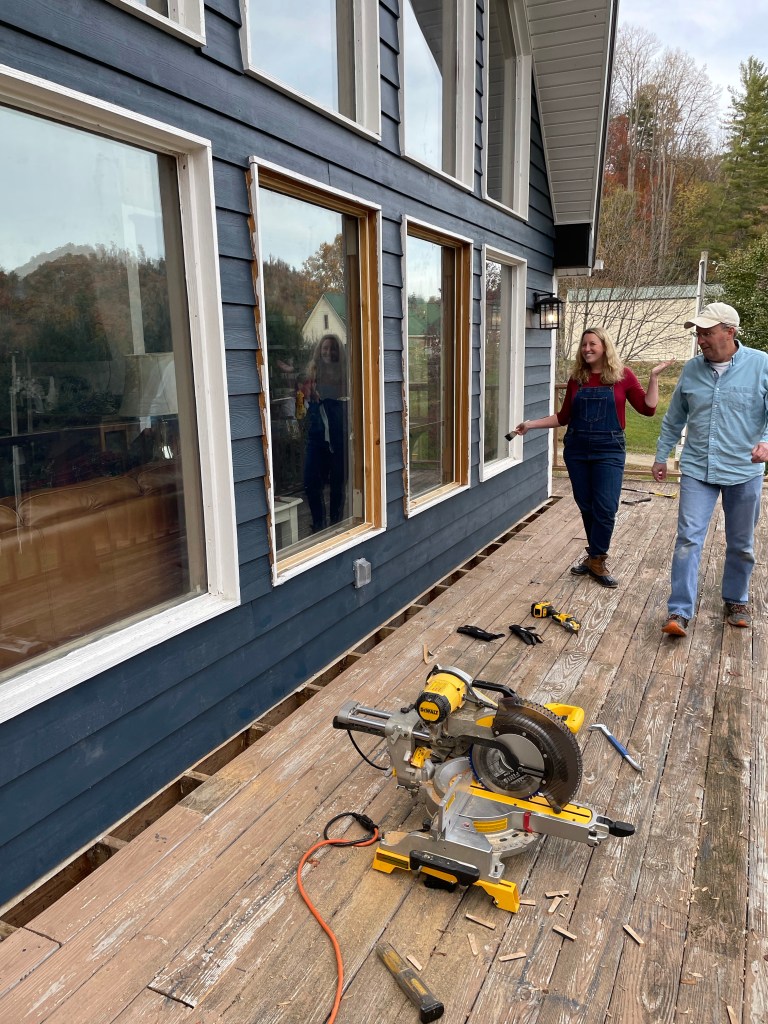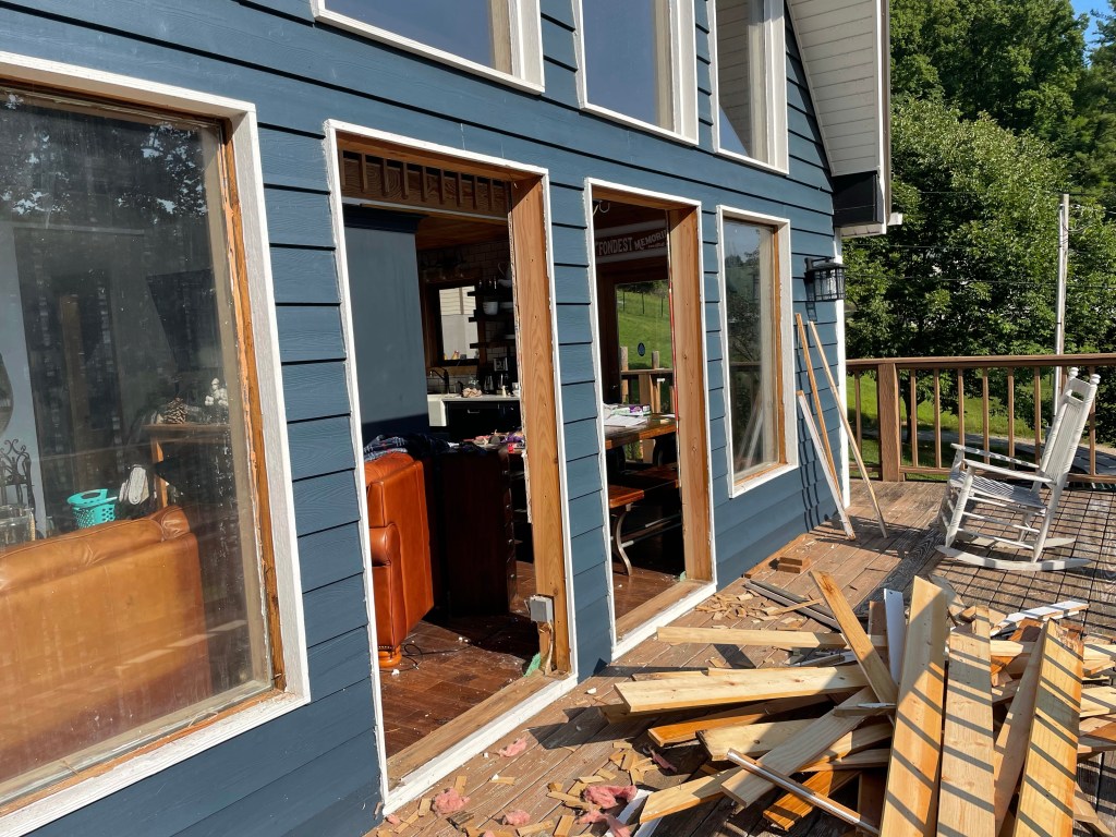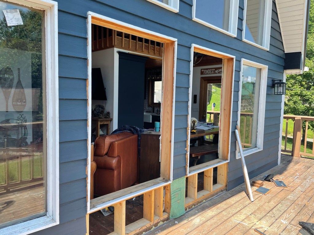The two doors on the front of the house were an obvious afterthought. It’s clear the original design was to have all windows of the same size and someone trimmed in doors later. This design made arranging furniture very difficult. There was no way to have our furniture in here without blocking a door. The doors also had some gaps that allowed bugs to get in easily. We decided to take the doors out and put back in windows to make the front of the house look more cohesive and fix the furniture issue.