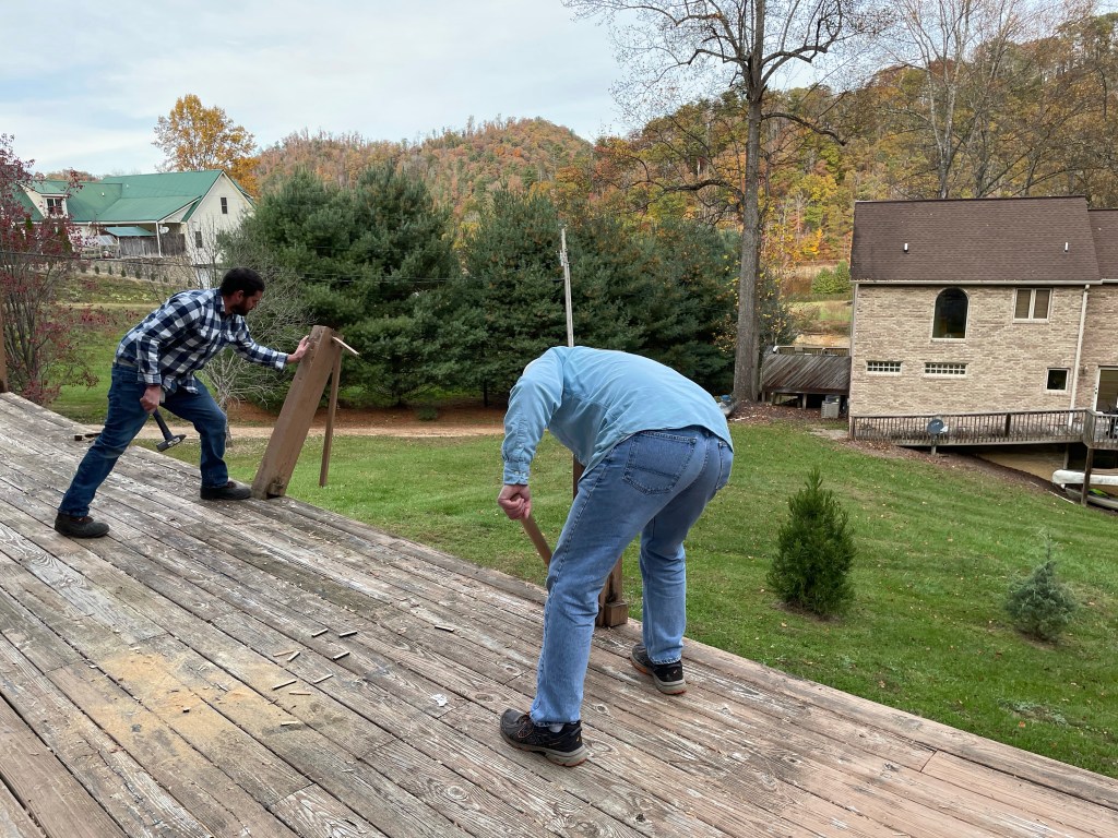 Stay tuned to see how it all turns out. In the meantime here is one final picture of our deck in a sad droopy state.