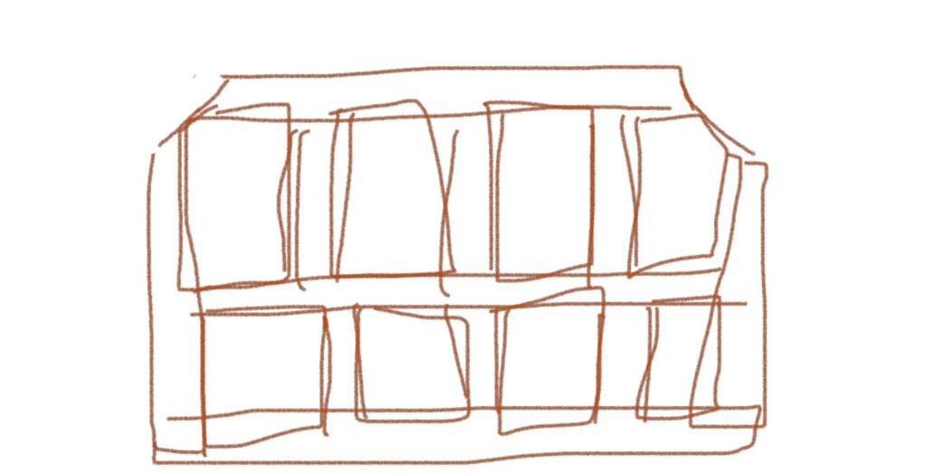 We have not retrimmed the new windows yet because we are going to remove all the window trim and do a more bulky wood to create a lattice look. Here is my not so professional drawing of how I want it to look.