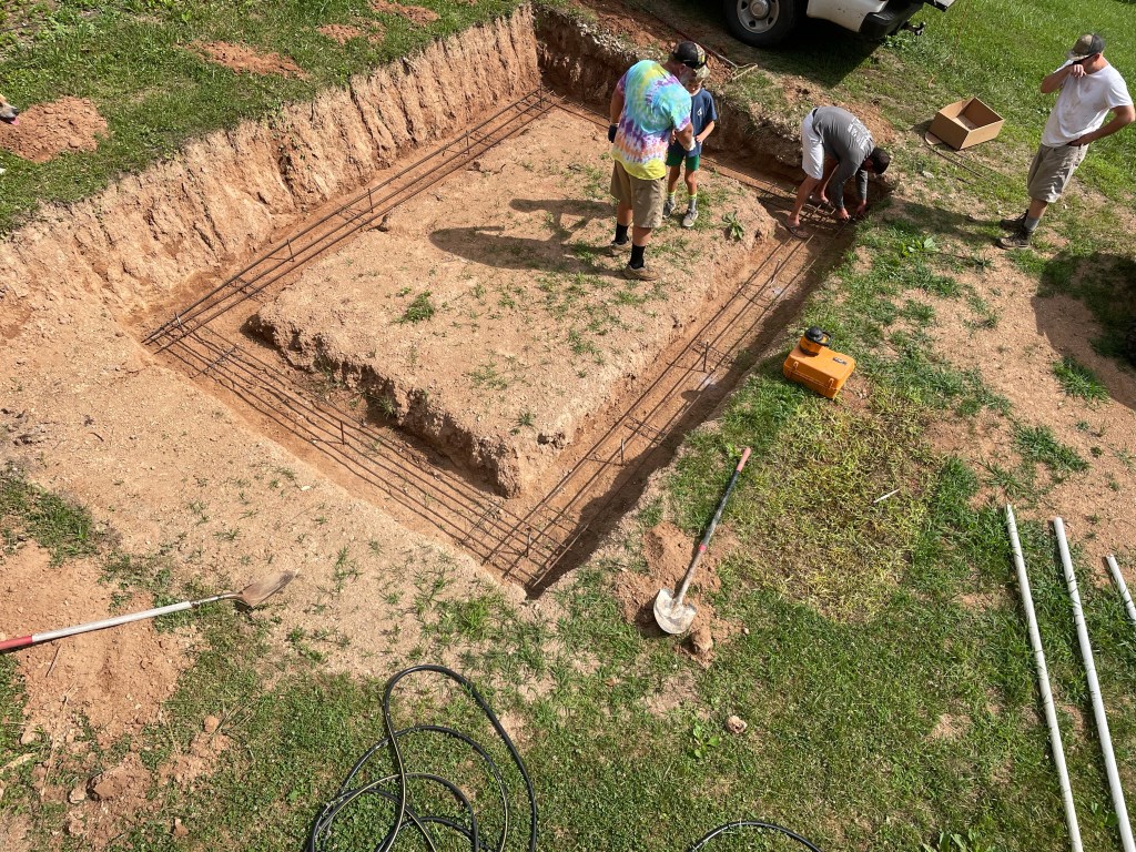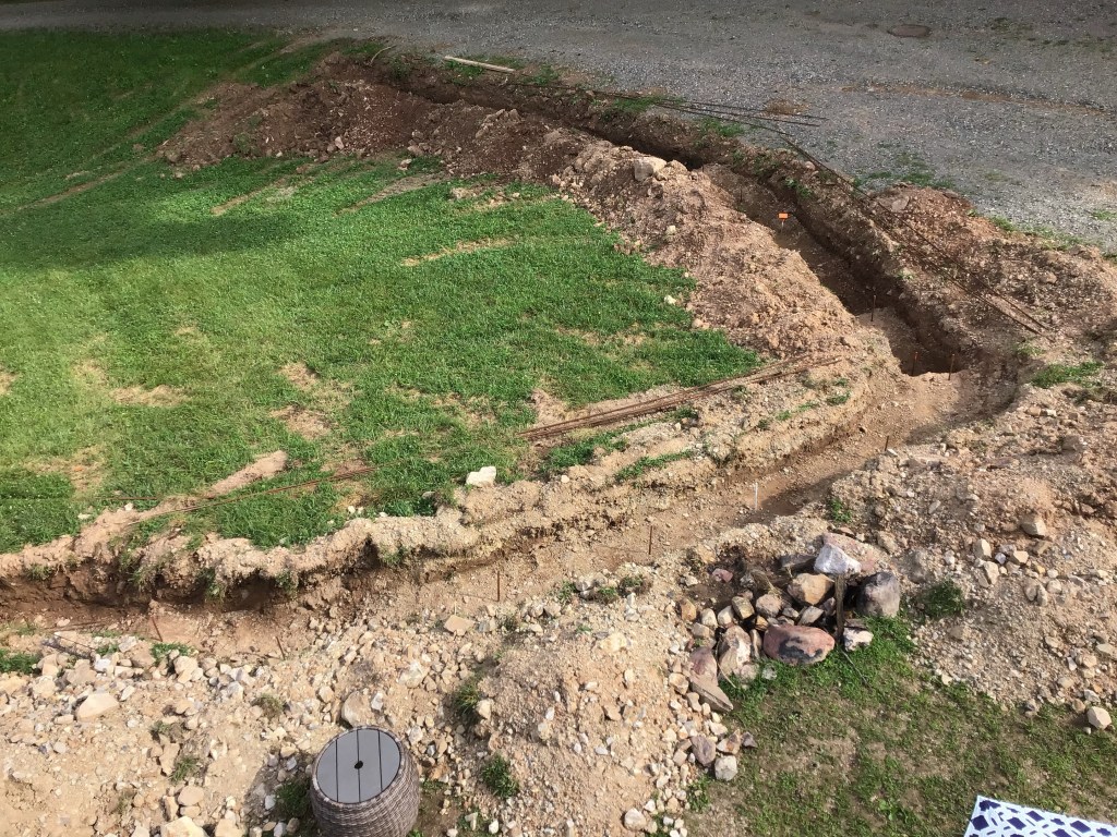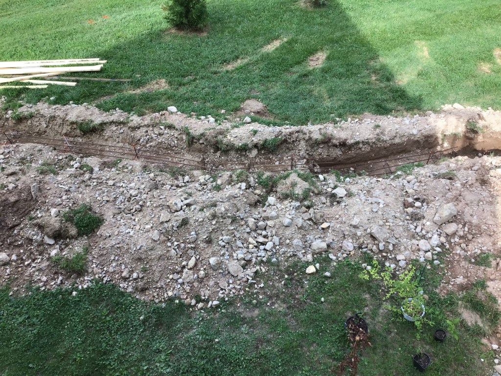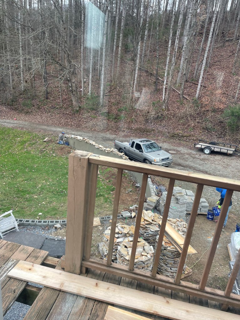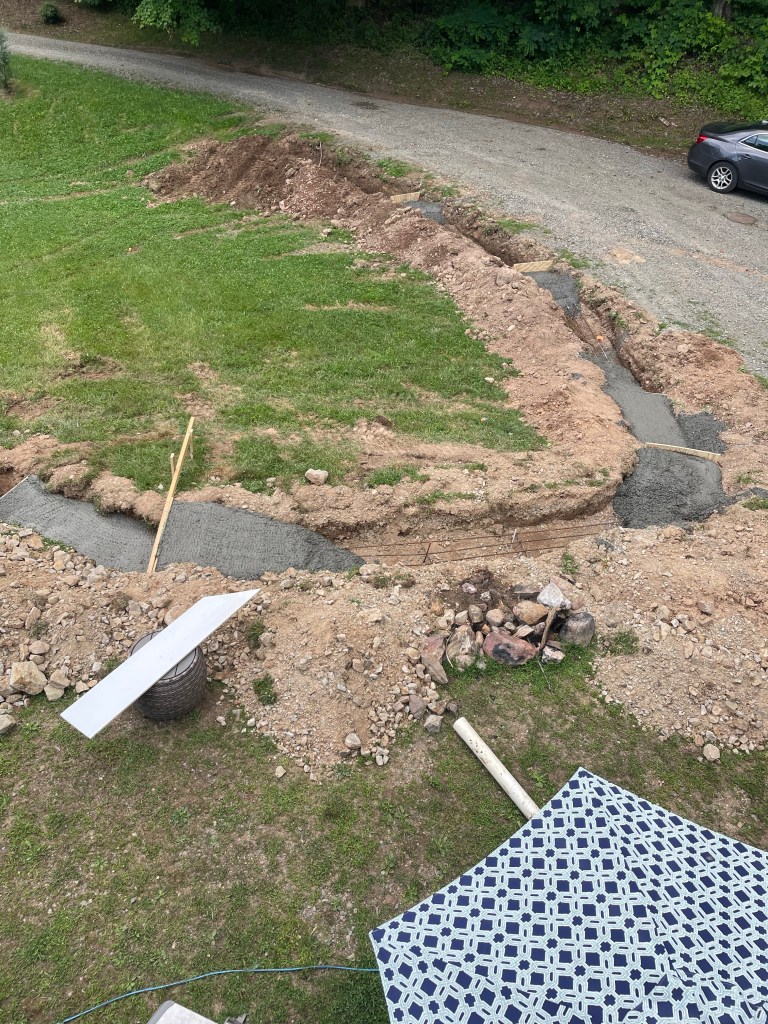 The first part of our outside renovation is complete. DeBord construction started the process by marking the wall in the shape we wanted.