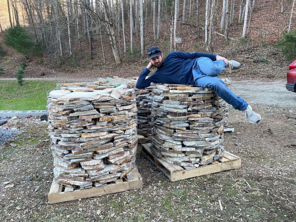 We ordered flagstone to match the stone already around our basement to cover the wall. The cap for the wall is a thick natural granite.